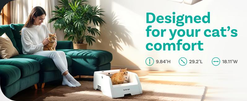 OPEN-TOP DESIGN FOR SAFER, STRESS-FREE USE – Unlike enclosed litter boxes that can trap or scare cats, PurrTek Lite’s open-top layout keeps your cat visible, calm, and safe. No doors, no hatches—just a clear and comfortable space your cat can trust.