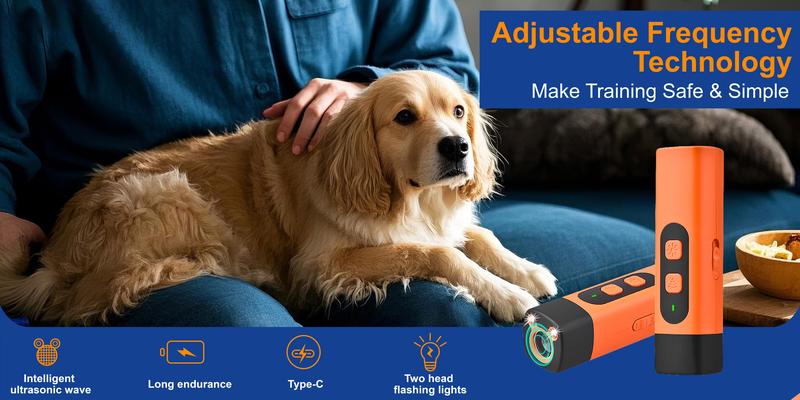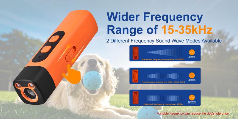 Safe and Gentle Solution for Noisy Dogs This innovative bark control device uses ultrasonic sound and flashing light to safely stop unwanted barking without shocks or harmful methods. The high-frequency sound 21-35KHZ is inaudible to humans but gets your dog's attention immediately.