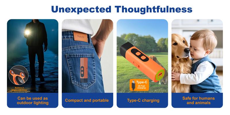 Key Features That Make It Effective Works up to 30 feet away making it perfect for walks and outdoor use Rechargeable battery lasts 30 days on just 0.6 hour charge Two training modes - ultrasonic sound and strobe light Compact portable design fits in your pocket